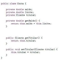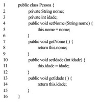 A utilização dos métodos getters e setters, à maneira dos declarados nas linhas 4, 7, 10 e 13 do código apresentado,