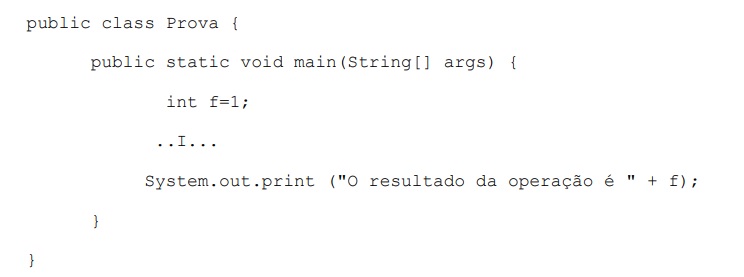 Para calcular 5! (cinco fatorial), a lacuna I deverá ser preenchida por: